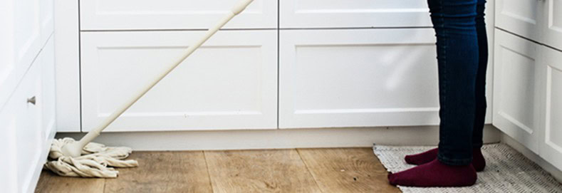 Si el vinílico es antiguo y requiere encerado, es mejor lavarlo con agua tibia y detergente. Humedecer una esponja o un trapeador en la mezcla y frotar el piso solamente lo necesario para desprender la suciedad. Trata de no trapear en exceso para no remover la cera y no tener que volver a aplicarla.