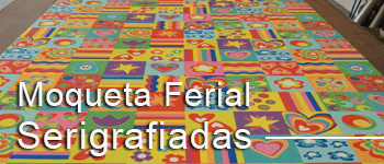 Moquetas feriales 100% polipropileno tintado en masa de color COLORES. Disponibles por metros o en bobinas completas, con y sin film protector. Perfectas para ferias, exposiciones y eventos. ¡Pregunta por nuestro servicio de serigrafía y digitalización!