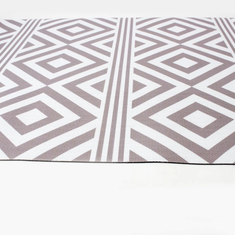 Rayas y Rombos Beige Alfombra Vinilica de exterior 80x150