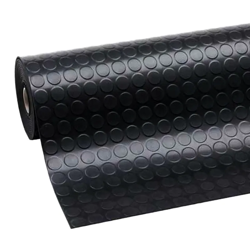Arquifloor Vinyl presenta un suelo de goma de círculos negro de PVC excepcional. Destaca por su inmejorable precio y su resistencia al tráfico intenso, lo cual lo convierte en una opción ideal para zonas de alto tránsito como talleres, fábricas, recepciones, centros comerciales, garajes, almacenes, vestuarios, etc...