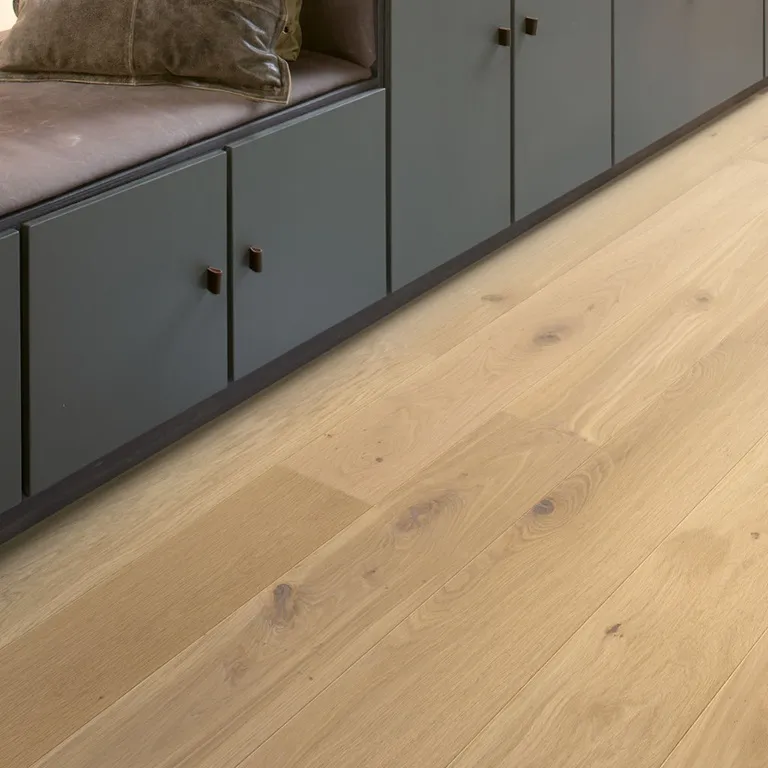 Rasgo característico de la colección Palazzo es el elegante formato de plancha, sorprendentemente bello en su equilibrio entre largo y ancho. Estas planchas de parquet largas y anchas aportarán profundidad a su estancia. Todos los diseños incorporan una junta sutil en el lado largo de cada plancha. Las siete capas de barniz de calidad aplicadas previamente le ahorran mucho trabajo, tiempo y esfuerzo.