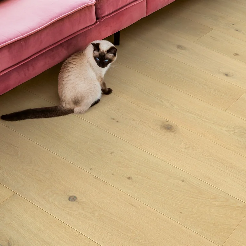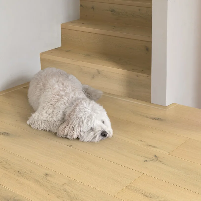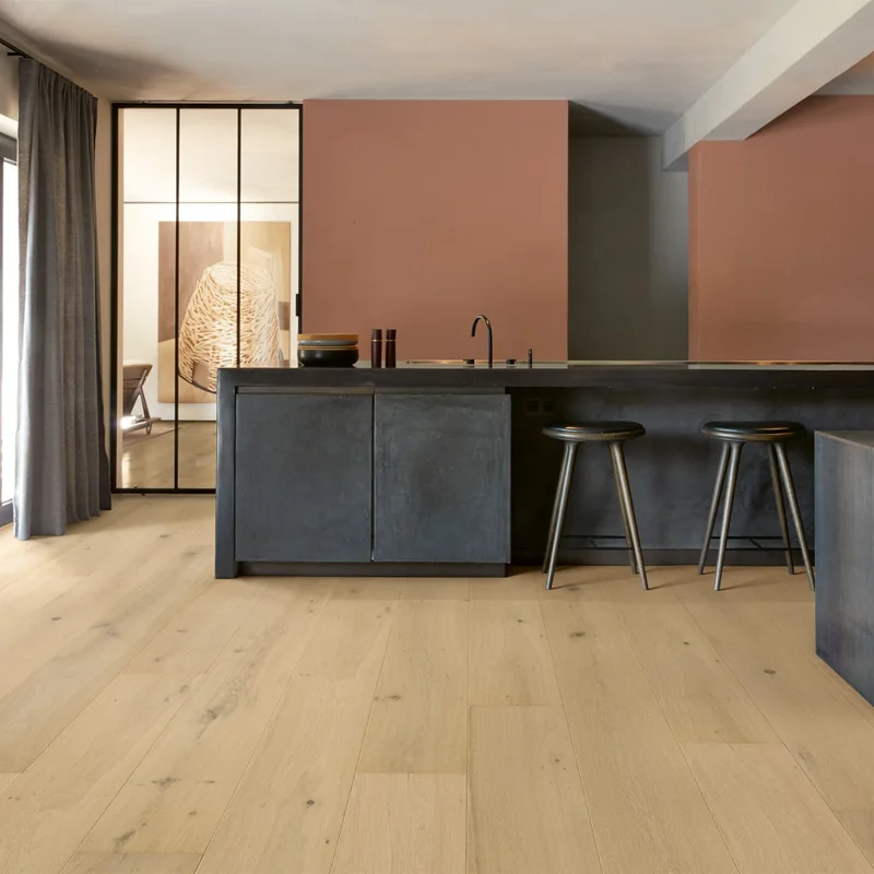 Mediante la recreación de la idea de una bahía protegida, Cala es donde la elegancia se une a la resistencia al agua. Realce su espacio con los cautivadores diseños de planchas anchas Cala, que combinan un estilo impresionante con una proteccción práctica. La colección Cala de Madera Natural de Quick Step es una colección con un tablero de 2200x200 de 13mm de grosor, con una capa de madera noble de 2,5mmm, con bisel de 2 o 4 lados en función del modelo. Lo que la hace perfecta para nuestro hogar.