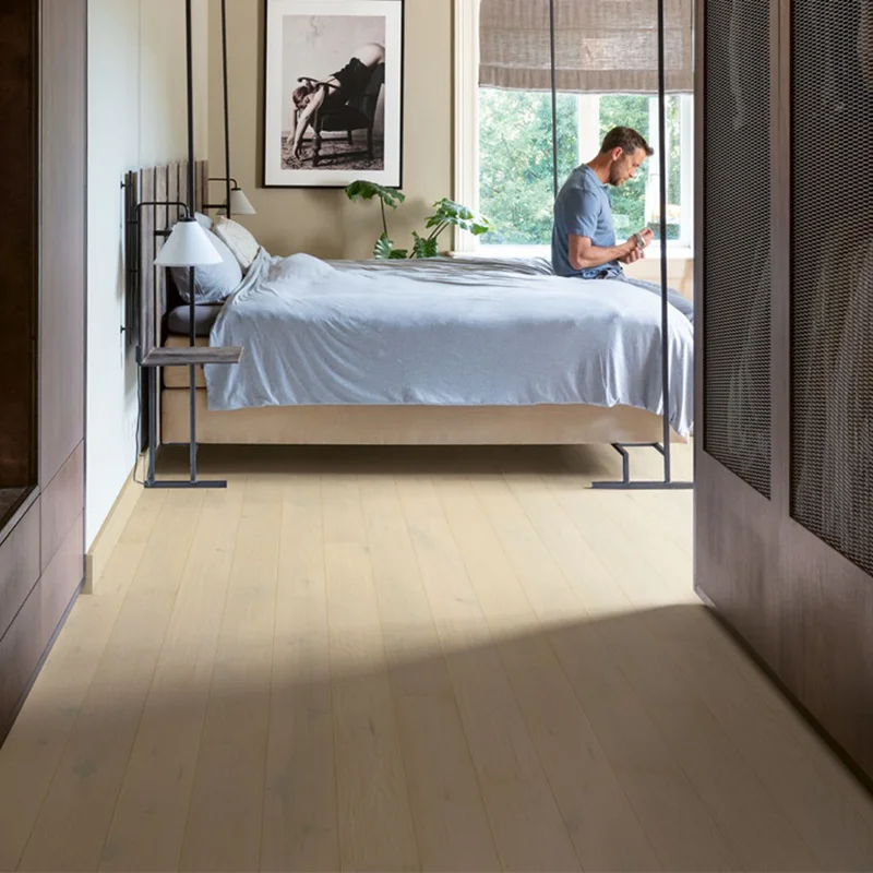 La colección Amato es la opción más compacta para nuestros suelos 100% resistentes al agua. Dejo que Amato dé amplitud a las habitaciones más pequeñas de su hogar con su sofisticación y funcionalidad. Resistete ala humedad es ideal para zonas pequeñas como baños y cocinas. La colección Amato esta compuesta por tablas de 1820x145x13mm con una capa de madera noble de 2,5mm, esta biselada a 2 lados