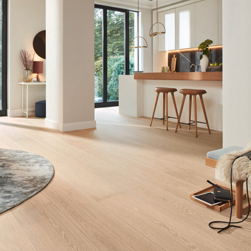 El Lindura es un suelo de madera que aguanta mucho. El motivo es su estructura especial. Se prensa una capa de cobertura de madera genuina con la innovadora tecnología «Wood Powder». Esta mezcla de fibras de madera y componentes minerales hace que la superficie de los Lindura soporte grandes cargas. Los tablones Lindura con aceitado natural son sinónimo de rusticalidad extendida: mediante el exclusivo proceso de producción se realzan especialmente las ramas, los desgarros y los poros de la madera. Quienes prefieran algo menos rústico, podrán elegir una superficie con barnizado mate: ¡aquí se obtiene una impresión de conjunto tranquila y armónica!