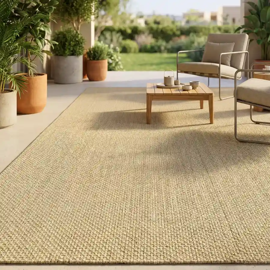Descubre la colección Brisa del Oasis, donde el diseño y la funcionalidad se unen para transformar tus espacios exteriores en auténticos oasis de confort. Inspiradas en las texturas naturales y los tonos cálidos de fibras tejidas, estas alfombras aportan un estilo elegante y acogedor a terrazas, patios o zonas de piscina. Su estética, que evoca materiales como el yute o el sisal, ofrece la belleza de lo natural con todas las ventajas de un material resistente y fácil de mantener. La colección Brisa está especialmente diseñada para exteriores: es duradera, resistente a la humedad y a los cambios climáticos, y muy fácil de limpiar, lo que la convierte en la opción perfecta para disfrutar sin preocupaciones. Además, su superficie agradable al tacto proporciona una sensación de confort ideal para crear ambientes relajados y sofisticados.