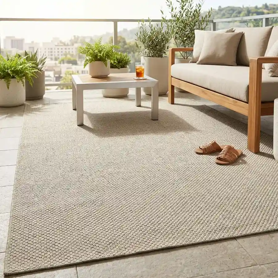 Descubre la colección Brisa del Oasis, donde el diseño y la funcionalidad se unen para transformar tus espacios exteriores en auténticos oasis de confort. Inspiradas en las texturas naturales y los tonos cálidos de fibras tejidas, estas alfombras aportan un estilo elegante y acogedor a terrazas, patios o zonas de piscina. Su estética, que evoca materiales como el yute o el sisal, ofrece la belleza de lo natural con todas las ventajas de un material resistente y fácil de mantener. La colección Brisa está especialmente diseñada para exteriores: es duradera, resistente a la humedad y a los cambios climáticos, y muy fácil de limpiar, lo que la convierte en la opción perfecta para disfrutar sin preocupaciones. Además, su superficie agradable al tacto proporciona una sensación de confort ideal para crear ambientes relajados y sofisticados.