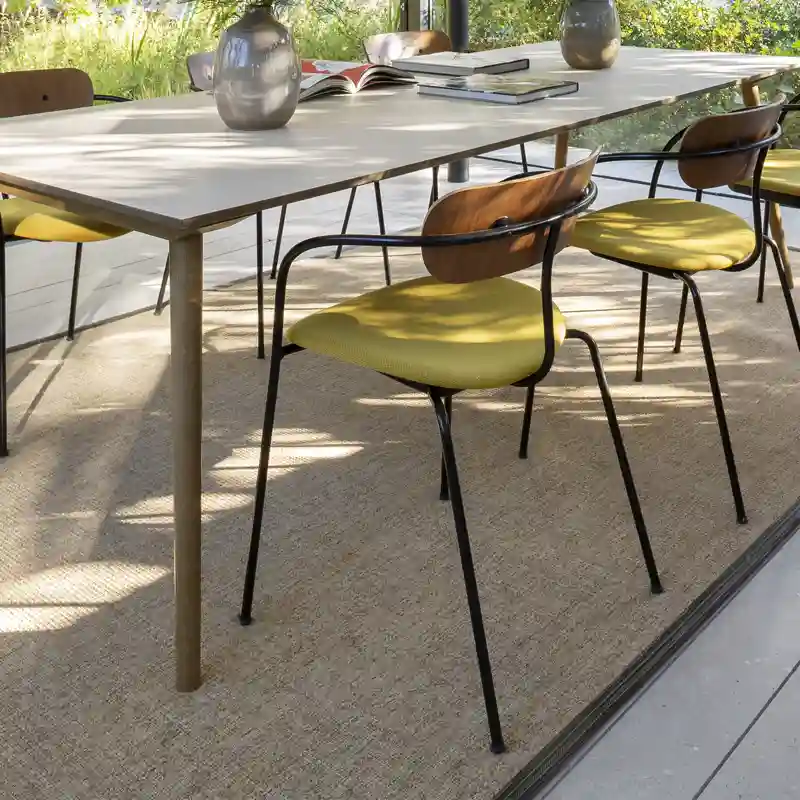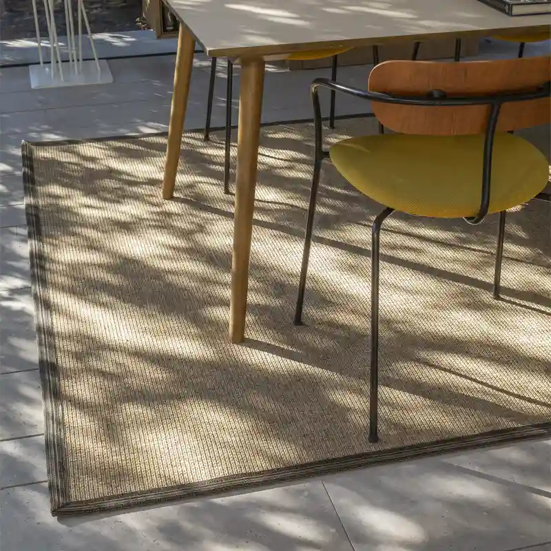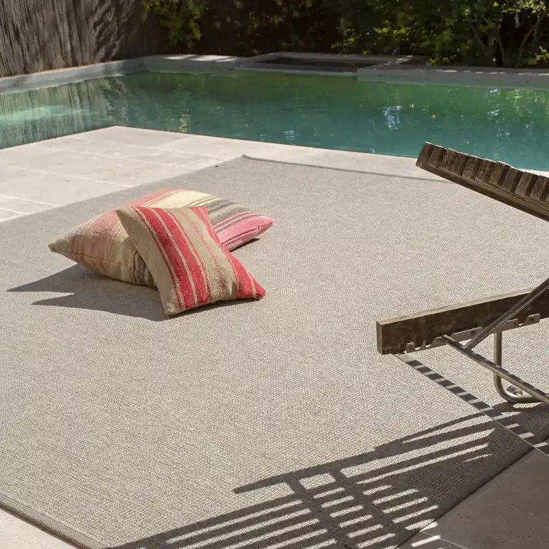 Hydro viene a sumarse al resto de colecciones de alfombras a medida aptas para exterior . Destacable es su aspecto natural, sus colores fáciles de combinar con el resto de los elementos de la decoracion y su textura suave. En cuanto a su construcción, tenemos un diseño en bucle que aporta gran resistencia al paso del tiempo y al uso. Es por esto último que tiene la clasificación al uso de Residencial intenso. Al cabo de los años la tecnología y la investigación de nuevos materiales nos ha permitido hacer mas atractivas nuestras colecciones de alfombras a medida de exterior. A día de hoy podemos mejorar el colorido de las mismas y acercar su apariencia al de las fibras naturales tan apreciadas en decoración.