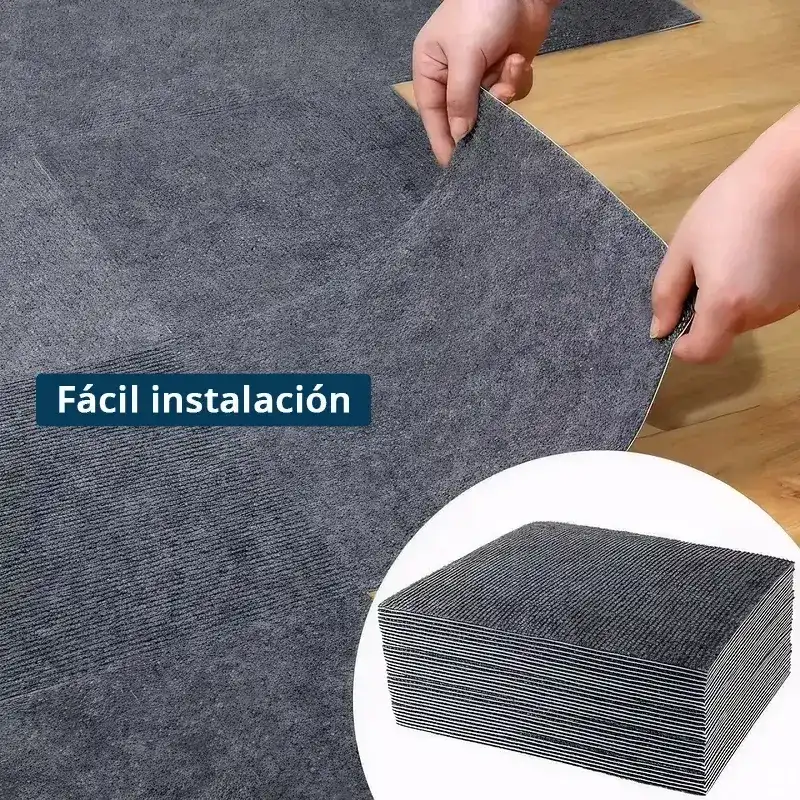 ¡Transforma tus espacios con las innovadoras losetas autoadhesivas en moquetas!autoadhesivas en moquetas! Con su base antideslizante, la instalación es rápida y sencilla, sin necesidad de pegamentos adicionales ni com ¡Transforma tus espacios con las innovadoras losetas autoadhesivas en moquetas!autoadhesivas en moquetas! Con su base antideslizante, la instalación es rápida y sencilla, sin necesidad de pegamentos adicionales ni complicadas fijaciones. Puedes dar vida a cualquier área, siempre y cuando cuente con un subsuelo libre de polvo, seco y plano. ¡Sin ruidos ni olores molestos! Disfruta de un proceso de renovación sin interrupciones. Su diseño en losetas te brinda la libertad de reemplazar fácilmente un módulo individual cuando sea necesario, manteniendo la integridad de tu espacio.Leer mas...MEDIDAS/LOGÍSTICA