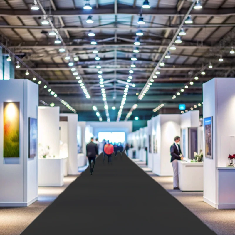 Moquetas feriales 100% polipropileno tintado en masa. Disponibles por metros, en bobinas completas, con y sin film protector. Perfectas para ferias, exposiciones y eventos. ¡Pregunta por nuestro servicio de serigrafía y digitalización!