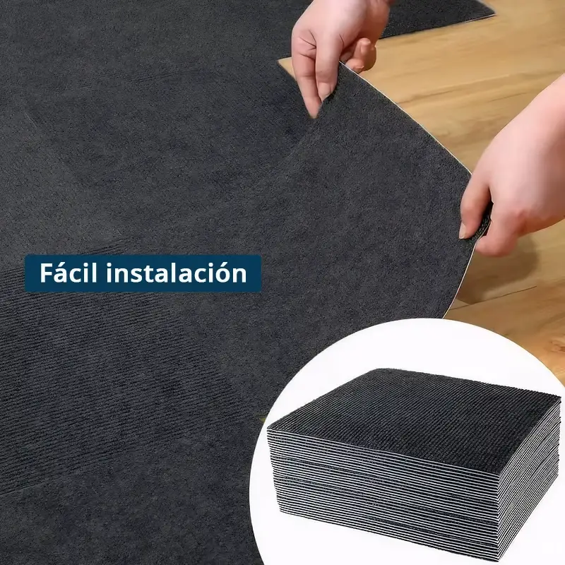 ¡Transforma tus espacios con las innovadoras losetas autoadhesivas en moquetas!autoadhesivas en moquetas! Con su base antideslizante, la instalación es rápida y sencilla, sin necesidad de pegamentos adicionales ni com ¡Transforma tus espacios con las innovadoras losetas autoadhesivas en moquetas!autoadhesivas en moquetas! Con su base antideslizante, la instalación es rápida y sencilla, sin necesidad de pegamentos adicionales ni complicadas fijaciones. Puedes dar vida a cualquier área, siempre y cuando cuente con un subsuelo libre de polvo, seco y plano. ¡Sin ruidos ni olores molestos! Disfruta de un proceso de renovación sin interrupciones. Su diseño en losetas te brinda la libertad de reemplazar fácilmente un módulo individual cuando sea necesario, manteniendo la integridad de tu espacio.Leer mas...MEDIDAS/LOGÍSTICA