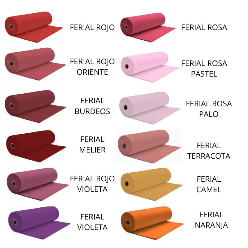| Notas | Moqueta ferial 100% polipropileno tintado en masa. Al precio hay que añadir 0,45€/m² en concepto de Film si se desea esta protección |