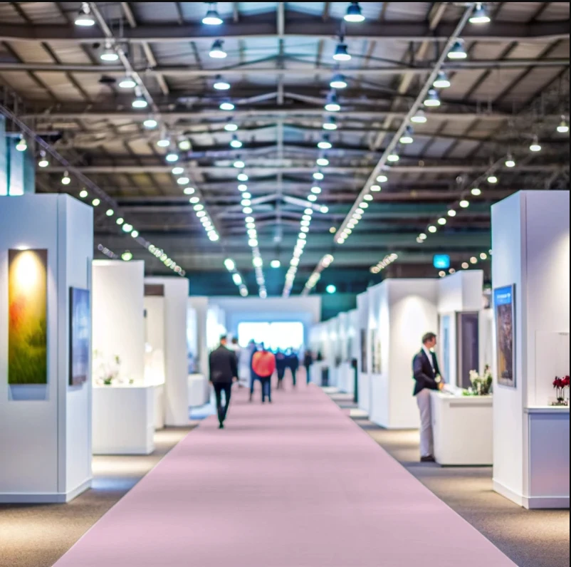 Moquetas feriales 100% polipropileno tintado en masa. Disponibles por metros, en bobinas completas, con y sin film protector. Perfectas para ferias, exposiciones y eventos. ¡Pregunta por nuestro servicio de serigrafía y digitalización!