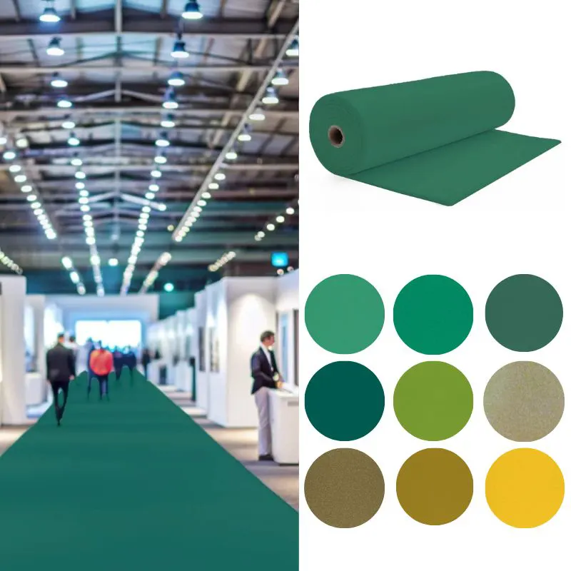 Moquetas feriales 100% polipropileno tintado en masa. Disponibles por metros, en bobinas completas, con y sin film protector. Perfectas para ferias, exposiciones y eventos. ¡Pregunta por nuestro servicio de serigrafía y digitalización!
