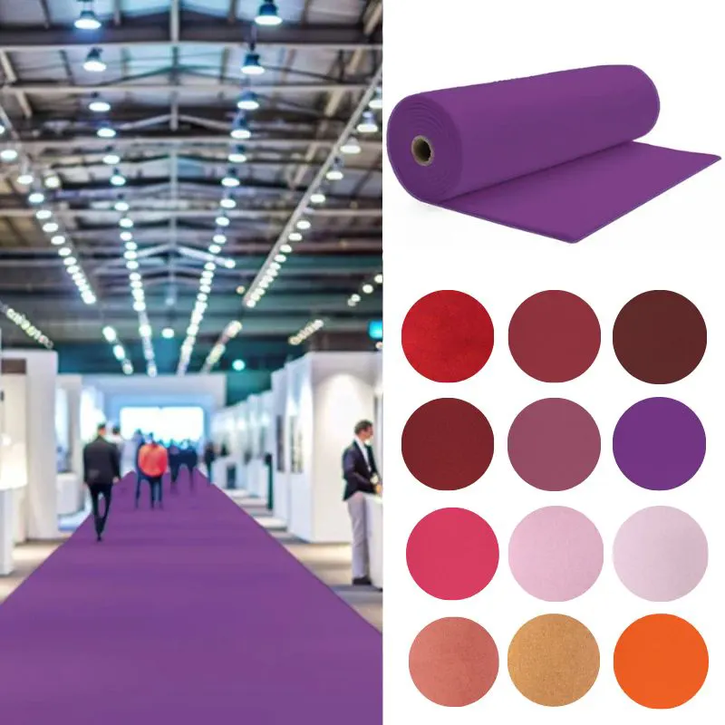 Moquetas feriales 100% polipropileno tintado en masa. Disponibles por metros, en bobinas completas, con y sin film protector. Perfectas para ferias, exposiciones y eventos. ¡Pregunta por nuestro servicio de serigrafía y digitalización!