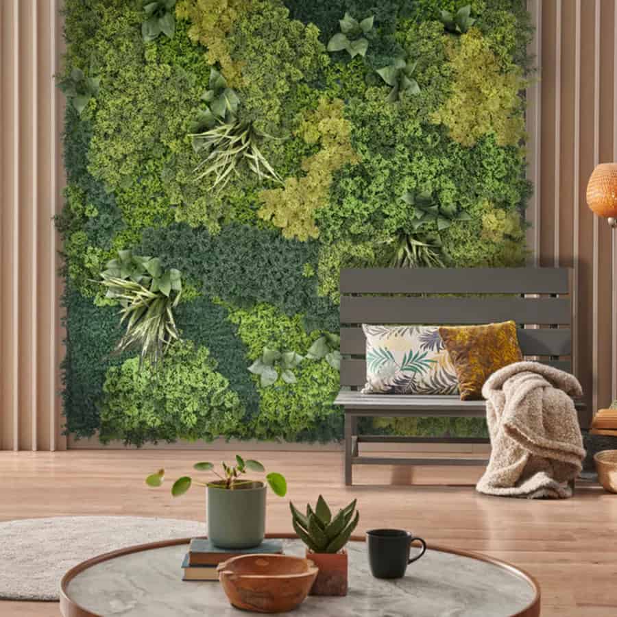 El jardín vertical artificial, consiste en una instalación adherida a una pared vertical que se cubre con una amplia gama de diferentes especies de plantas y hojas sintéticas llenas de colores vivos y flores variadas para dar ese toque de autenticidad y originalidad. Los jardines verticales son muy versátiles y se pueden colocar tanto en el exterior (terrazas, balcones, patios, fachadas…) como en el interior (salón, cocina, habitación, pasillos…). Con estos jardines verticales conseguiremos dar más naturalidad a nuestros rincones favoritos y conectar más con la naturaleza con un nuevo espacio verde.