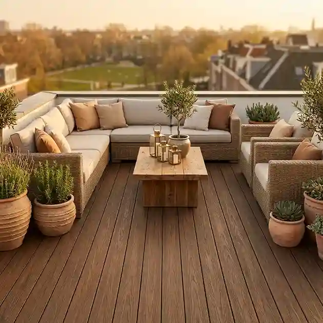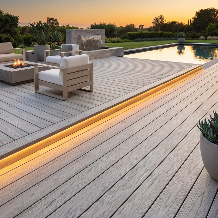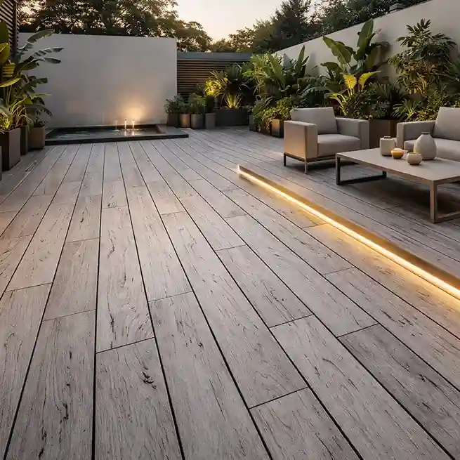 Tarima Madera Exterior Blanco Humo| Lama Composite Maciza