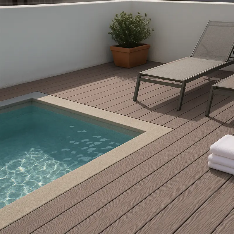 La colección de tarimas de Dos Colores Exterior Tech Nueva Delhi DUO de Aquifloor, es ideal para disfrutar del mejor diseño en su terraza y/o piscina pudiendo combinarlos y crear ambientes únicos. Con sus distintos colores y acabados contribuyen a crear ambientes de exterior atractivos, cómodos y fáciles de disfrutar sin brillos. Fortaleza, flexibilidad, diseño y estilo son las cualidades que le proporcionará cualquiera de las tarimas de Arquifloor.