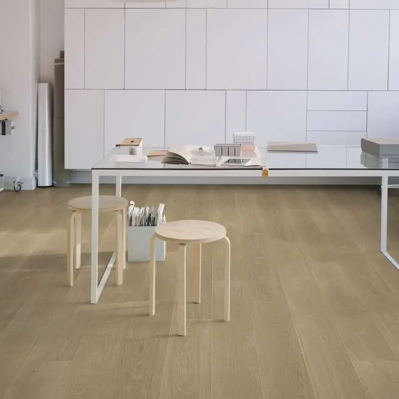 Colección de tarimas laminadas antiestáticas, de clase de uso 32 para un uso doméstico intenso y comercial en general. Con sistema UNI fit! y 20 años de garantía.
