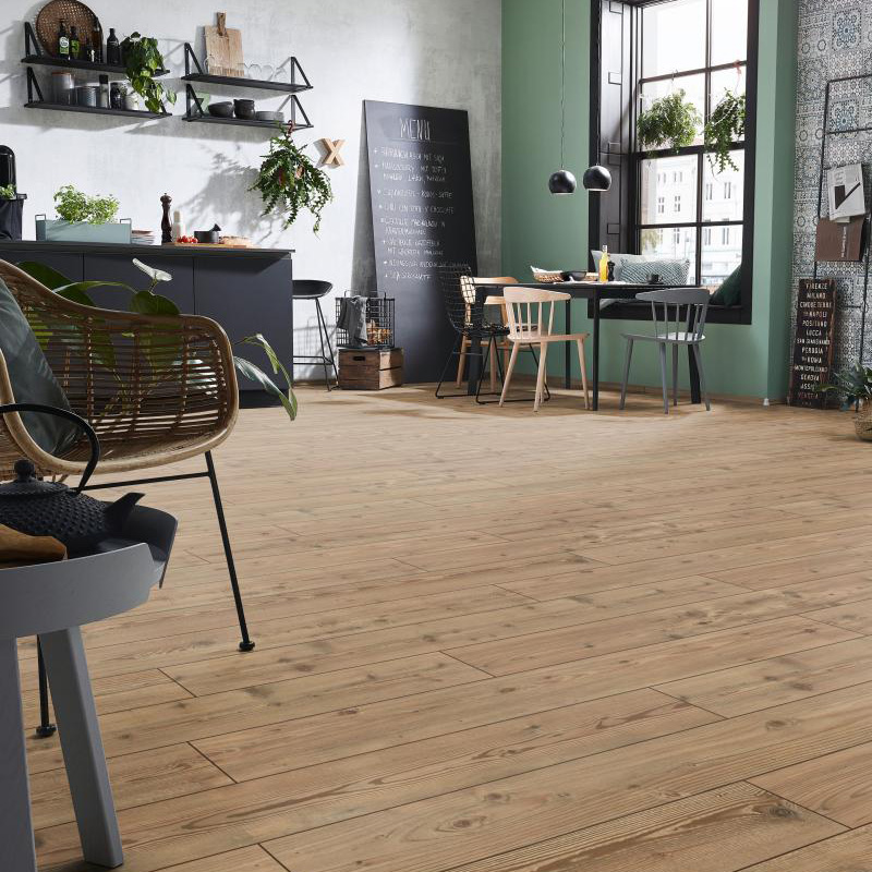 Disfrute de los objetos bellos de la vida. Apueste por los valores reales, experimente lo bueno y lo auténtico. EXQUISIT de Kronotex es un suelo tan noble y natural como la madera. Es la perfección por antonomasia, irradia calor y comodidad y le ofrece una sensación al caminar similar a la de madera maciza. Su veteado sincronizado y el fulgor opaco de su superficie le confieren una estructura auténtica y crean un ambiente acogedor y natural. El V-nut finamente fresado contribuye también al logro de su aspecto típico y elegante.