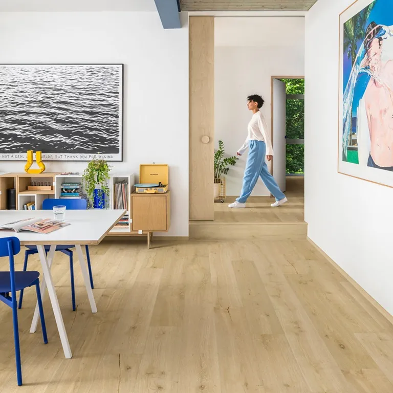 Impressive es una nueva generación de suelos laminados. Suelos con aspecto y tacto más naturales que nunca, y con una innovadora tecnología que los convierte en un exclusivo revestimiento impermeabilizante gracias a HydroSeal. Las tablas tienen un espesor de 8 mm y están biseladas. Cuentan con 25 años de garantía en uso residencial y 5 para uso comercial.