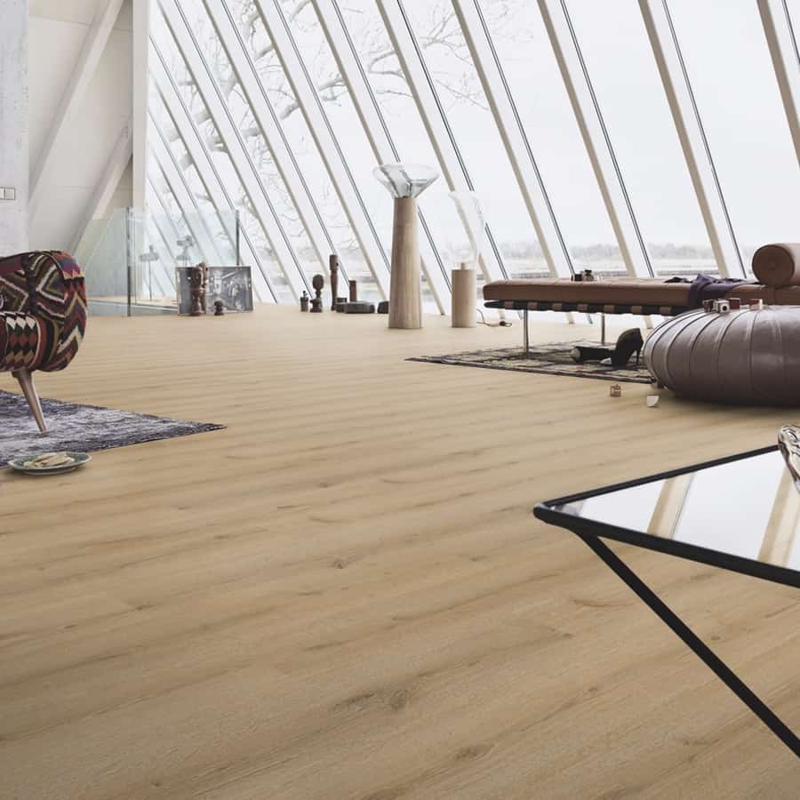 El Meister Design. laminate LC 150 antiestático, resistente al agua y totalmente resistente a los arañazos es el suelo laminado inteligente para todas las aplicaciones. Con su altura de montaje de 8 mm y una categoría de utilización 23 | 32, es apropiado para áreas domésticas de uso muy frecuente, como el cuarto de baño, o áreas comerciales (p. ej., tiendas o restaurantes). El tablón corto es muy versátil, muy fácil de colocar y de transportar.