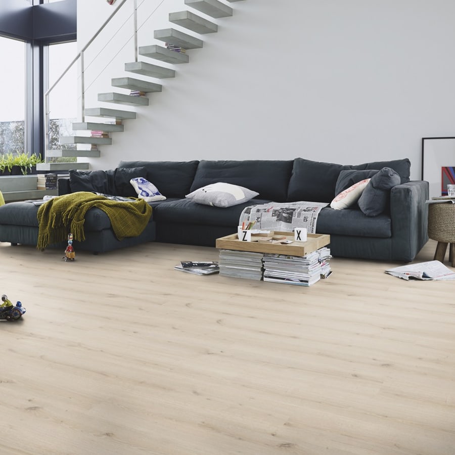 El Meister Design. laminate LC 150 antiestático, resistente al agua y totalmente resistente a los arañazos es el suelo laminado inteligente para todas las aplicaciones. Con su altura de montaje de 8 mm y una categoría de utilización 23 | 32, es apropiado para áreas domésticas de uso muy frecuente, como el cuarto de baño, o áreas comerciales (p. ej., tiendas o restaurantes). El tablón corto es muy versátil, muy fácil de colocar y de transportar.