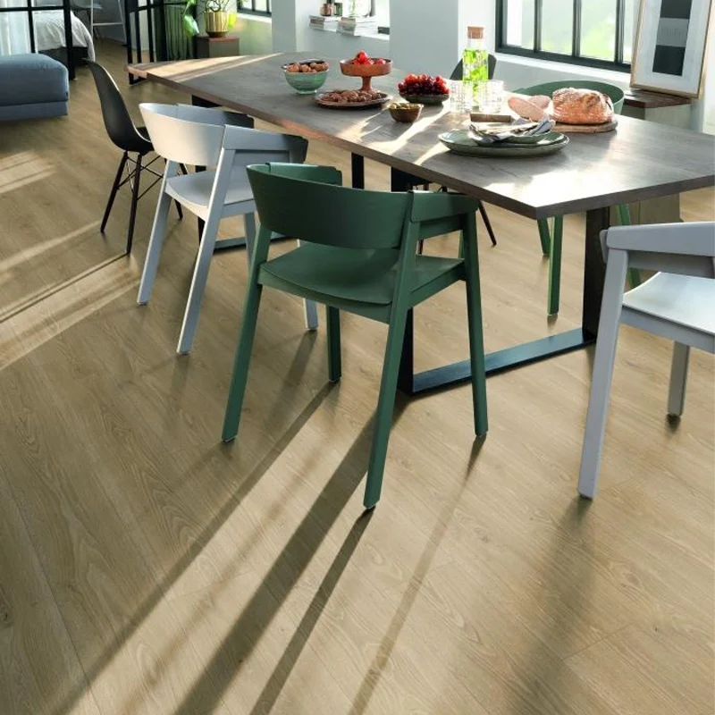 Todos los suelos EGGER están fabricados con un laminado de calidad especialmente resistente y con una tecnología antiestática. Versátiles para todos los espacios, tanto de uso residencial como comercial su instalación es sencilla gracias a los sistemas de clic que EGGER tiene patentados. Los laminados con Aqua+ son apropiados para zonas húmedas