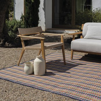 Pero estas alfombras no solo representan la belleza de la Tierra, sino también nuestro compromiso con su cuidado. Cada alfombra de la colección «Tapiz Exterior» está confeccionada con hilatura creada a partir de PET postconsumo.