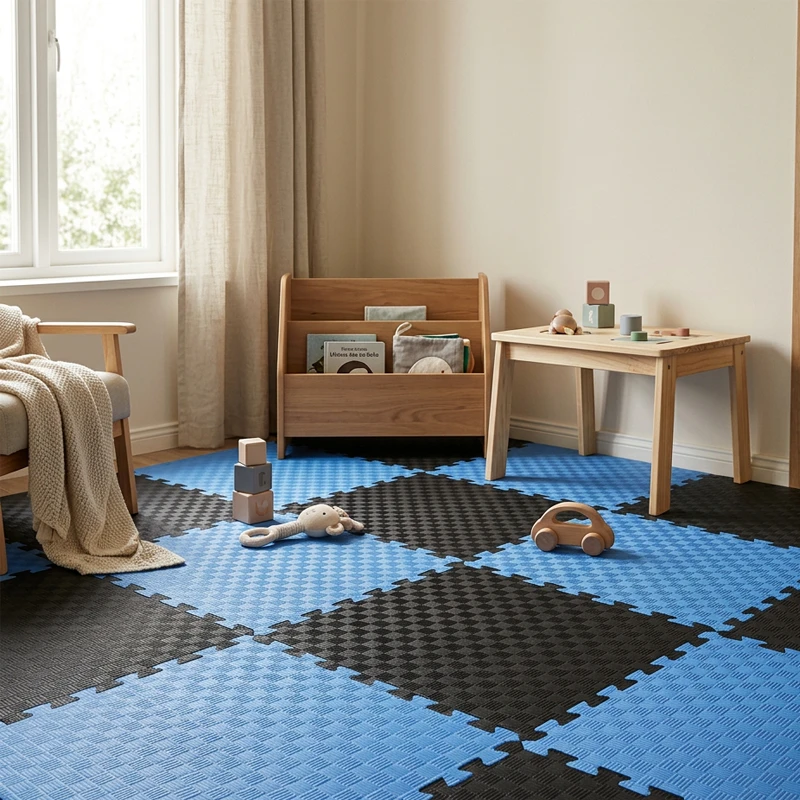 - El Tatami debido a su colorido, alegre, llamativo y amortiguación en las caídas, se utiliza en salas de juego, colegios y espacios infantiles de uso intensivo. El tatami infantil debe tener certificado CE reglamento REACH UE siempre sujeto a que este material no está prescrito para este uso específico y debe ser utilizado, sólo, bajo el cumplimiento de la normativa que rige las zonas infantiles para la protección frente a caídas en España (y en Europa) UNE-EN 1176 y UNE-EN 1177 para suelos absorbentes o amortiguantes.