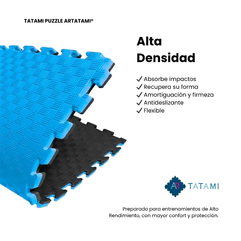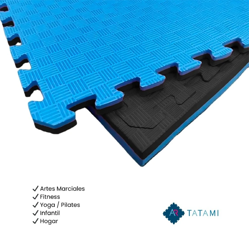 Nuevo tatami [Reversible plus +] con caras a 4 colores. Alarga la durabilidad del tatami un 50% frente al desgaste del material con su uso en el tiempo y colorido, al poder intercambiar la posiciones de las losetas por Nuevo tatami [Reversible plus +] con caras a 4 colores. Alarga la durabilidad del tatami un 50% frente al desgaste del material con su uso en el tiempo y colorido, al poder intercambiar la posiciones de las losetas por ej. en las zonas de más desgaste se puede sustituir o cambiar de posición las piezas. Ofrece múltiples combinaciones estéticamente en su vida útil. y trabajar frente al desgaste en cuatro posiciones.El suelo de ArTatami es una opción fácil para la realización de ejercicios como yoga, karate, yudo, y demás deportes de contacto esta disponible en un grosor de 20mm, 26mm y 40mm. Disfruta del mejor precio del mercado de tu suelo de Tatami. ¡No lo dejes escapar! El Tatami Puzzle de Pavimentos Arquiservi es para uso deportivo profesional. Específico para Artes Marciales y Lucha MMA con una gran absorción de impactos y amortiguación en normativa tiene una densidad 95 Kg/m³. Estructura inteligente con memoria para la rápida recuperación de la planeidad del suelo ante la deformación producto en la pisada, las caídas e impactos. El tatami deportivo equilibra firmeza y flexibilidad en cualquier disciplina: deportes de caída, proyecciones, contacto y lucha. Los espacios destinados a su uso son: gimnasios, dojos, escuelas y salas de entrenamiento. El tatami de Pavimentos Arquiservi cumple con los certificados REACH /ROHS Ausencia de substancias peligrosas. Con las siguientes características - Utilizado también con diversas limitaciones para fitness y Wellness en gimnasios y salas polivalentes o multifuncionales mixtas para hacer actividades recreativas de ejercicio físico ejemplo aerobic, pilates, spinning, cardio, step, yoga, body balance, ejercicios de suelo, estiramientos, flexibilidad, gimnasia o mantenimiento. La normativa de estos materiales UNE-EN ISO 9239-1 prioriza la certificación ignífuga y la absorción de ruidos y vibraciones, y no regula la absorción de caídas de una persona. En estas actividades se hace necesario un suelo semirígido como las losetas de caucho o suelo vinílico deportivo. - Las losetas de Tatami son muy utilizadas en hogares por ser un material, sostenible, no tóxico, resistente, de fácil montaje y desmontaje, suavidad y sencilla limpieza. - El Tatami debido a su colorido, alegre, llamativo y amortiguación en las caídas, se utiliza en salas de juego, colegios y espacios infantiles de uso intensivo. El tatami infantil debe tener certificado CE reglamento REACH UE siempre sujeto a que este material no está prescrito para este uso específico y debe ser utilizado, sólo, bajo el cumplimiento de la normativa que rige las zonas infantiles para la protección frente a caídas en España (y en Europa) UNE-EN 1176 y UNE-EN 1177 para suelos absorbentes o amortiguantes. - La unión en puzzle entre piezas las hace desmontables y ofrece una colocación limpia fácil y rápida. Cada pieza o Loseta se puede colocar y retirar según sus necesidades, permitiendo personalizar el área de cobertura deseada en distintas estéticas al ser reversibles. El Tatami Puzzle de Pavimentos Arquiservi es para uso profesional. Específico para Artes Marciales y Lucha MMA. Absorción de impactos y amortiguación en normativa. Densidad 95 Kg/m3. Estructura inteligente con memoria para la rápida recuperación de la planeidad del suelo ante la deformación producto de la pisada, las caídas e impactos.Leer mas...