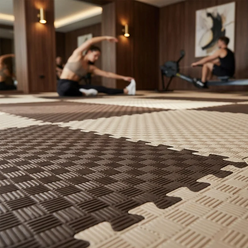- Utilizado también con diversas limitaciones para fitness y Wellness en gimnasios y salas polivalentes o multifuncionales mixtas para hacer actividades recreativas de ejercicio físico ejemplo aerobic, pilates, spinning, cardio, step, yoga, body balance, ejercicios de suelo, estiramientos, flexibilidad, gimnasia o mantenimiento. La normativa de estos materiales UNE-EN ISO 9239-1 prioriza la certificación ignífuga y la absorción de ruidos y vibraciones, y no regula la absorción de caídas de una persona. En estas actividades se hace necesario un suelo semirígido como las losetas de caucho o suelo vinílico deportivo.