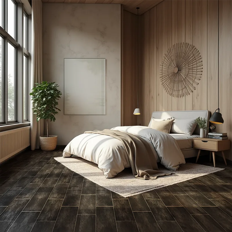 Colección de suelos vinílicos en acabados madera y piedra, de diversos espesores. Disponibles por metros y con 5 años de garantía.