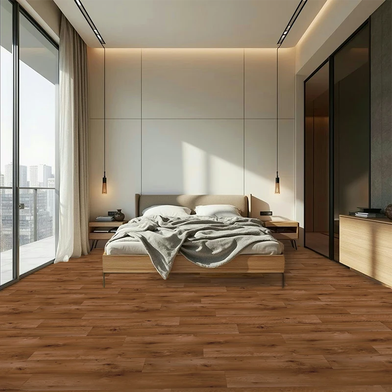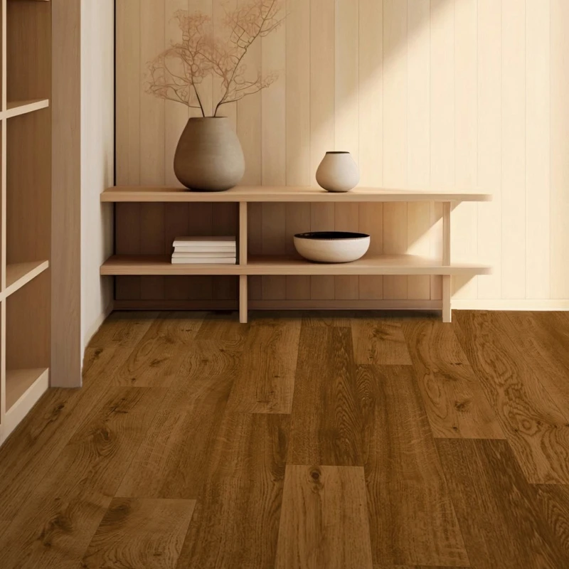 Colección de suelos vinílicos en acabados madera y piedra, de diversos espesores. Disponibles por metros y con 5 años de garantía.