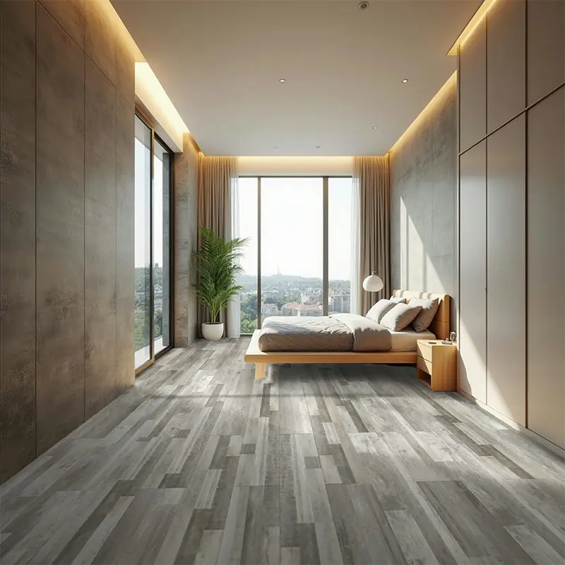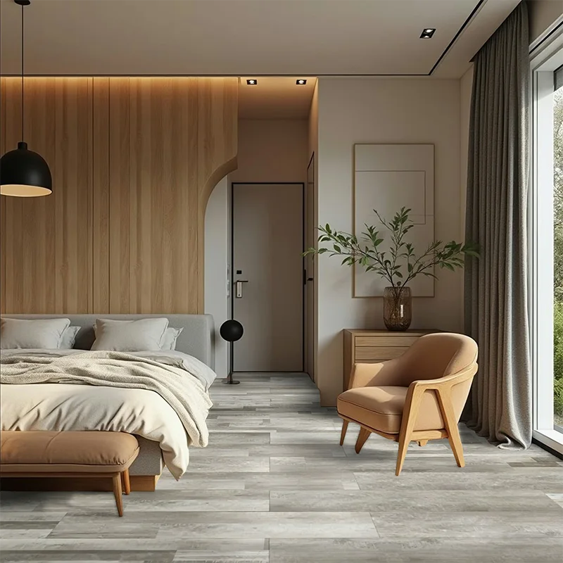 La colección Ultra Floor ofrece infinitas posibilidades estéticas para un suelo vinílico, es adecuado para cualquier espacio Es un pavimento vinílico fabricados con núcleo SPC, con textura realista. Compuesto por una capa de barniz UV, capa de uso de 0,5mm, capa de policloruro de vinilo y una capa inferior de 1,5mm de Goma EVA y un tratamiento en superficie con PU, 100% hidrófugo y resistente al agua.