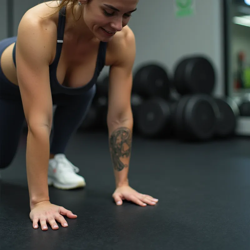 - * Prevención de resbalones y deslizamiento involuntario: el suelo de caucho debe ser totalmente antideslizante, para prevenir resbalones y caídas. Esto es esencial, especialmente en áreas donde los usuarios pueden estar sudando, como cerca de máquinas de cardio o en salas de entrenamiento intenso. Nuestras losetas de superficie lisa garantizan una limpieza y un mantenimiento sencillos, siendo totalmente antideslizantes y estéticas..