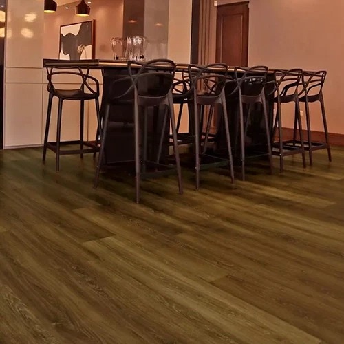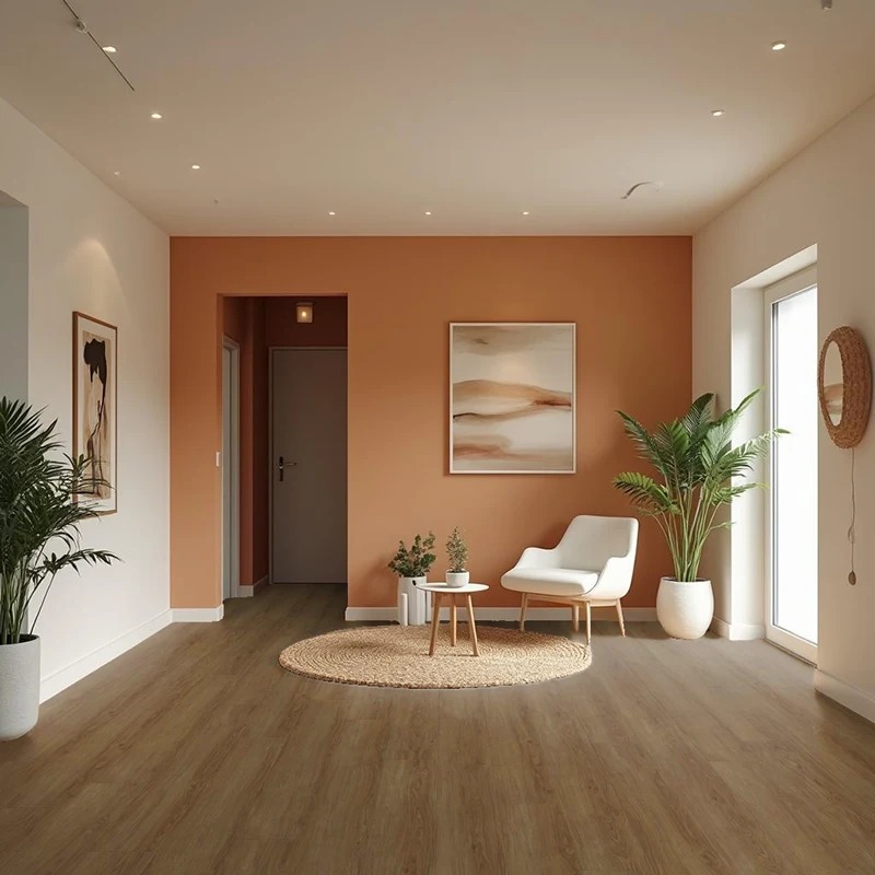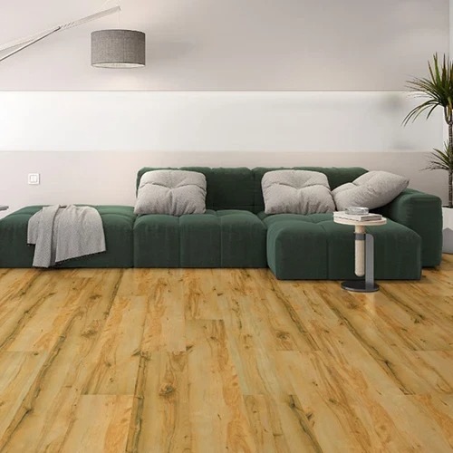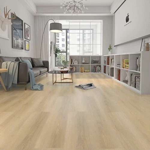 El suelo SPC extra ancho y largo suele presentar acabados que imitan con gran realismo la textura y el color de la madera natural, consiguiendo un efecto cálido y elegante en cualquier estancia.